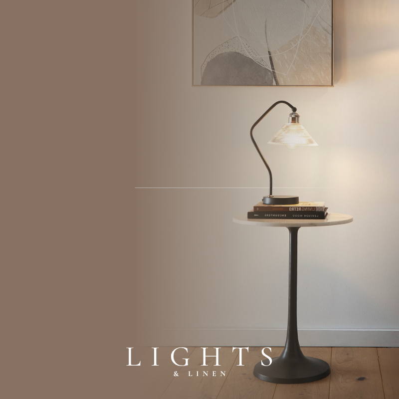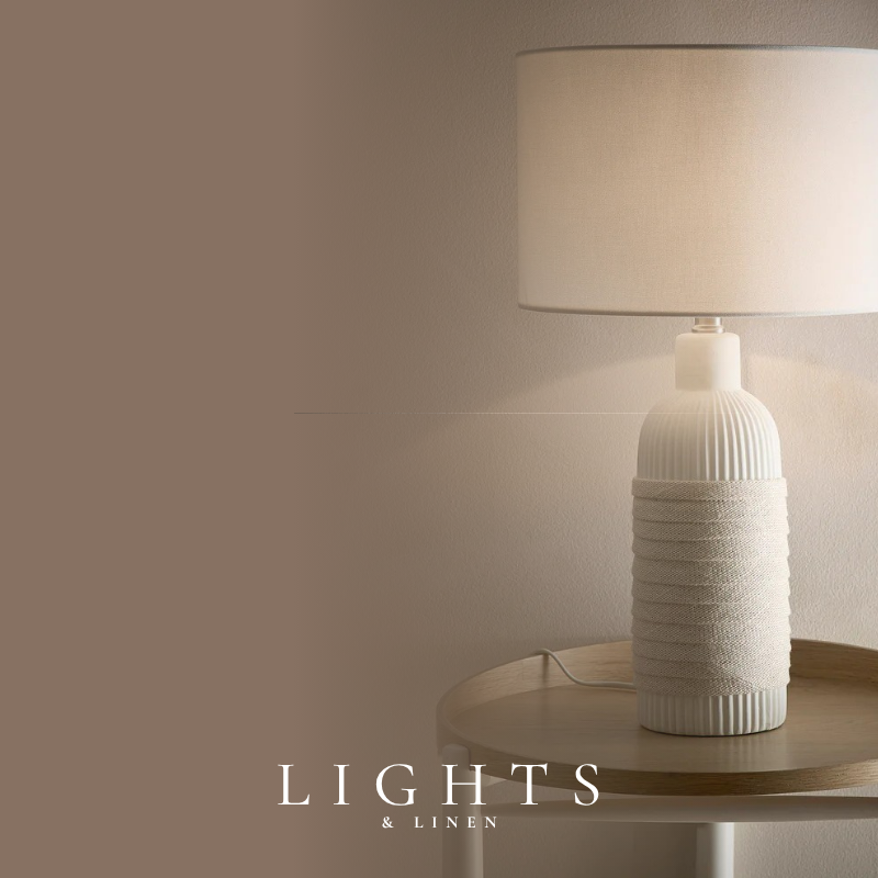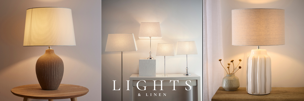 Illuminate your indoor space to create a cosy environment with our range of beautiful table lamps. Our table lamp collections offer a variety of options to transform your living space into a central focus for your family and friends. Lights and Linen offer table lamps, bedroom lamps, desk lamps, living room lighting, and ambient lighting options to decorate your living space. We carry a range of ceramic, wooden, metal and glass table lamps with lovely lamp shades to match.