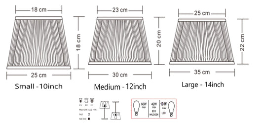 Grey Linen Lampshade Coolie for Lamps and Ceiling options, Available in 10, 12 and 14 inch sizes.