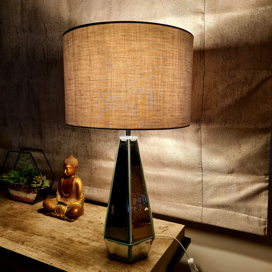 KLiving Glendale Mirrored Table Lamp with Grey Shade