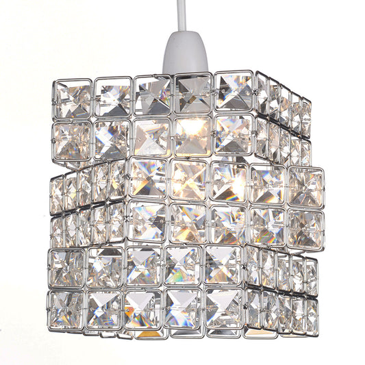 Rubiks Cube Effect Sparkly Beaded Ceiling Pendant Light, Chrome