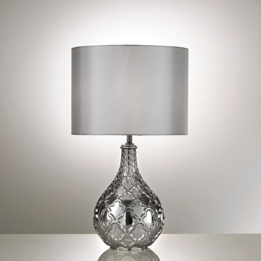 Smokey Grey Glass Table Lamp with Grey Satin Lamp Shade