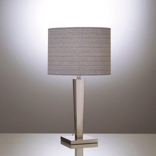 Table Lamp with Satin Nickel Metal and a Grey Linen Fabric Lamp Shade