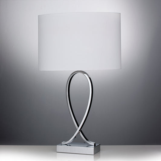 Tall Chrome Table Lamp with Ivory Fabric Shade