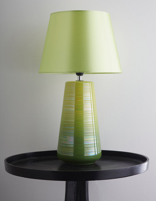Ceramic Glazed Table lamps with Textured Weave Lampshades in Red, Green or Blue options