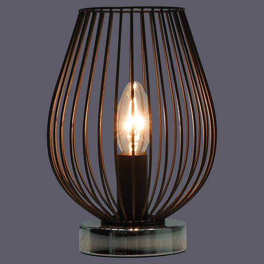 Camille Chrome and Matt Black Metal Caged Industrial Look Touch Lamp