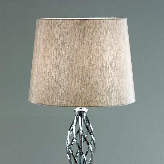 Chrome Table Lamp Base with a Light Gold Fleck Shade and a Feature Barley Twist Spiral stem