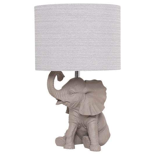 Elephant Animal Grey Table Lamp with a Fabric Grey Lampshade, Stunning Home Decorative Lamp