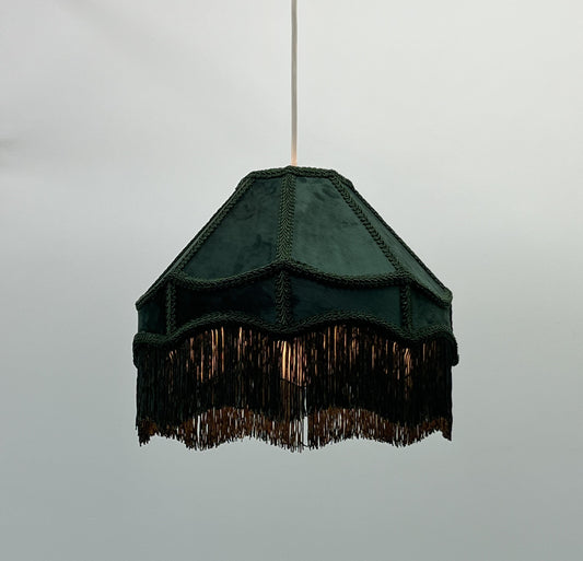 Empire Lamp Shade in a Victorian Style in Dark Green Velvet with Long Tassels (8in, 10in, 12in)