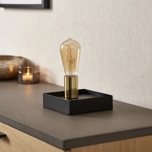 Key Black Lightbulb Table Lamp with USB Socket