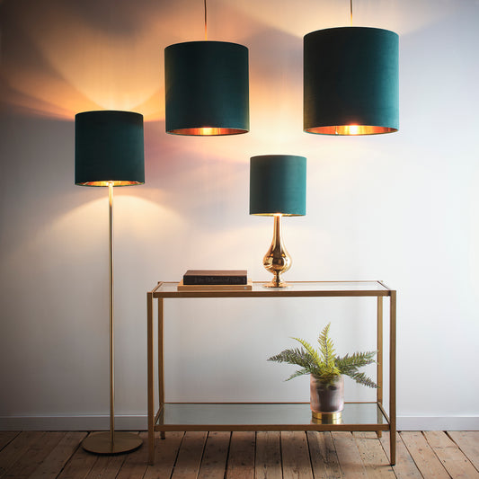 Green Velvet Drum Lampshade for Modern Table Lamps and Ceiling Pendant Fixtures