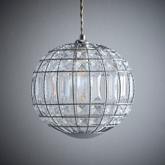 Round Clear Pendant in Chrome with Acrylic Beads and Sparkling Decorative Effect