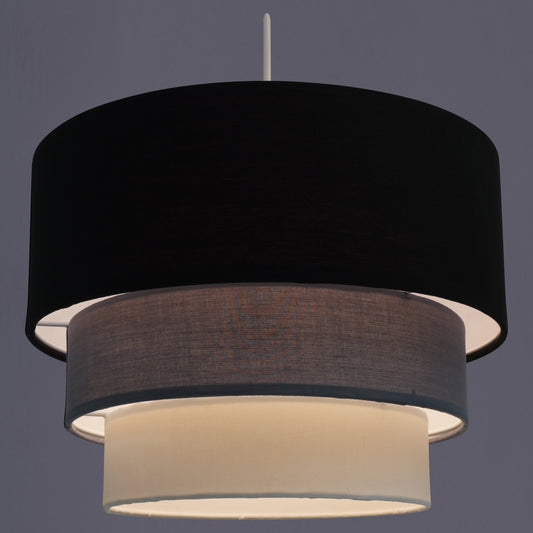 Kinsale Tiered Multi-Colour Drum Ceiling Light Shade, Black/Grey/White