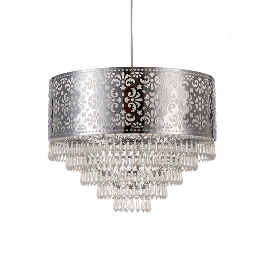 Emily Chrome Cut-out Drum Chandelier with Acrylic Tiered Crystals
