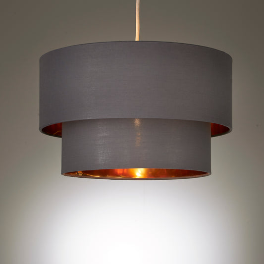 Rona 2 Tier Pendant Shade with Inner Gold Lining, Grey