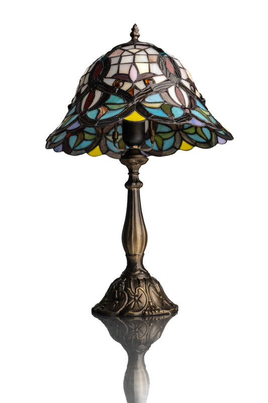 12" Mitcham Tiffany Style Stained Glass Dragonfly Table Lamp