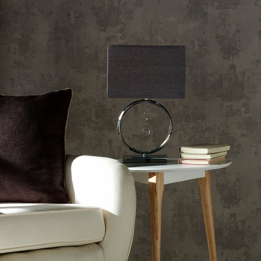 Lizzy Chrome table lamp or floor lamp with circle design and hanging bead design with a Grey lampshade
